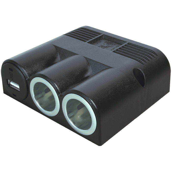 Med dette strømudtag får du en løsning, der gør det nemt at fordele strømmen til for eksempel kølebokse og andre enheder, der kører på 12 til 24 volt. Du har to stikkontakter og et USB-udtag med en udgang på 5 volt DC og 10